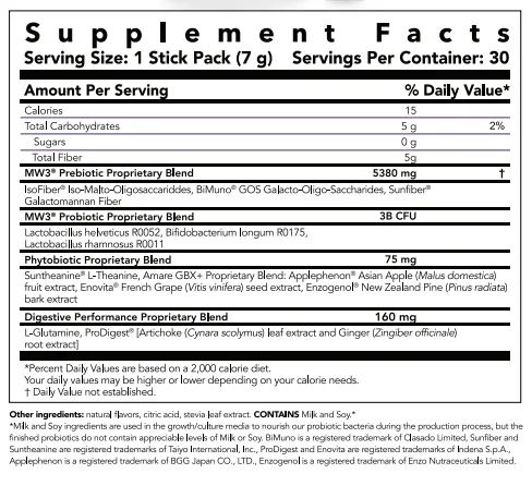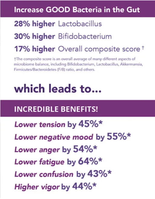 1. Improves multiple aspects of mental wellness by populating the microbiome with specific strains of probiotics and prebiotics
